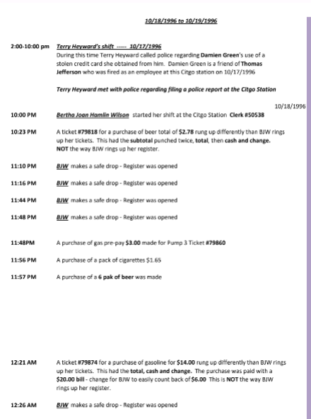 Glenda Fonseca initially stated she had a $20 bill and bought cigarettes and beer. Then her story continued to change saying she bought a pack of condoms. Trying to fit her ‘purchases’ into matching a receipt time that was purchased at a later time. The Charleston police tried to show that she was at the store much later and as a fake alibi indicating she talked with BJW the cashier.